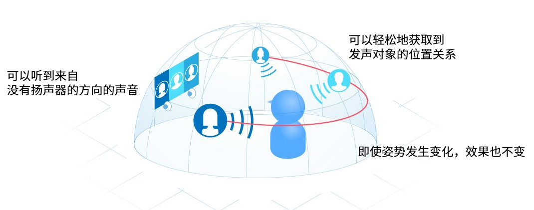 • 即使聽(tīng)者在一定程度上發(fā)生姿勢變化,也可以聽(tīng)到帶有方向感的聲音