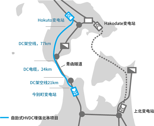 本技術(shù)適用于連接日本北海道 — 本州的自勵式直流送電項目(300MW、DC 250kV、DC 1200A)。