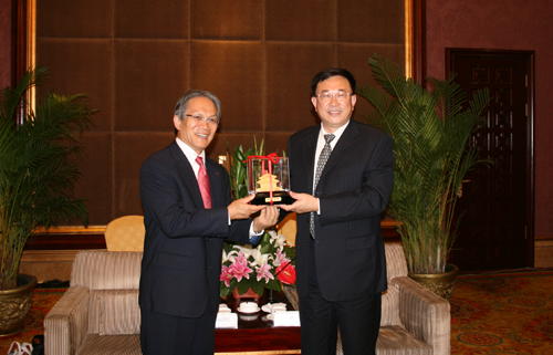 企業(yè)新聞東芝中國總代表桐山輝夫與沈陽(yáng)市市長(cháng)陳海波親切會(huì )談2012年-08月-06日東芝中國總代表 桐山輝夫與沈陽(yáng)市市長(cháng) 陳海波在沈陽(yáng)進(jìn)行了親切地會(huì )談。桐山輝夫對東芝在沈投資企業(yè)得到沈陽(yáng)各級政府部門(mén)的大力支持表示感謝。同時(shí)表示,東芝(中國)有限公司將在沈陽(yáng)設立分公司,希望在沈陽(yáng)尋求更多合作機會(huì ),謀求更大發(fā)展。 -