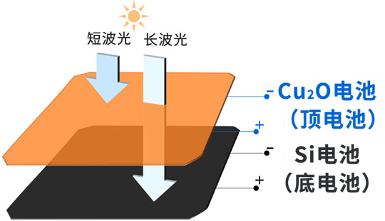 而透射型Cu2O太陽(yáng)能電池的主要原材料和制造設備價(jià)格低廉,預計生產(chǎn)成本將會(huì )大幅降低。透射型Cu2O太陽(yáng)能電池通過(guò)吸收短波光進(jìn)行發(fā)電,并且可以透射長(cháng)波光,而Si太陽(yáng)能電池作為底電池,通過(guò)吸收長(cháng)波光進(jìn)行發(fā)電。采用這種方式后,無(wú)論長(cháng)短波長(cháng)的光都可以被轉化為電能。