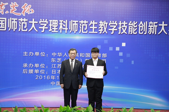 12月9日至12日,由中華人民共和國教育部、東芝(中國)有限公司共同舉辦的“第八屆東芝杯?中國師范大學(xué)理科師范生教學(xué)技能創(chuàng )新大賽”(以下簡(jiǎn)稱(chēng)大賽)決賽,在江蘇師范大學(xué)舉行。教育部領(lǐng)導、東芝公司及江蘇師范大學(xué)領(lǐng)導均出席了決賽頒獎現場(chǎng)。